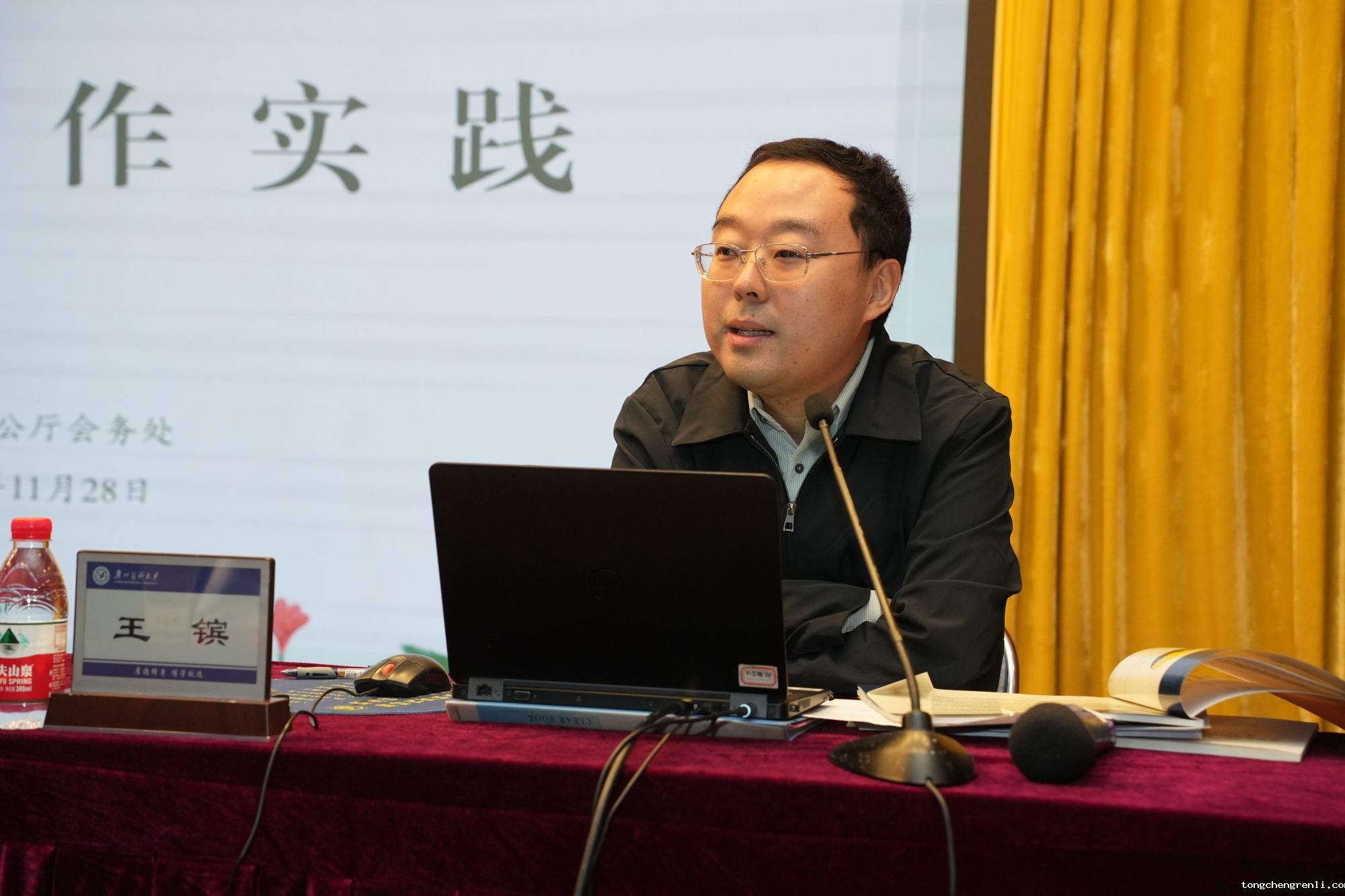 市委办公厅会务处副处长王镔、市政府研究室研究中心主任潘其胜以及市委机要和保密局总工程师王蓉晖分别从会务工作、公文写作、保密工作的角度,对行政管理人员所必备的基础本领、核心技能和关键意识进行了深入解读。