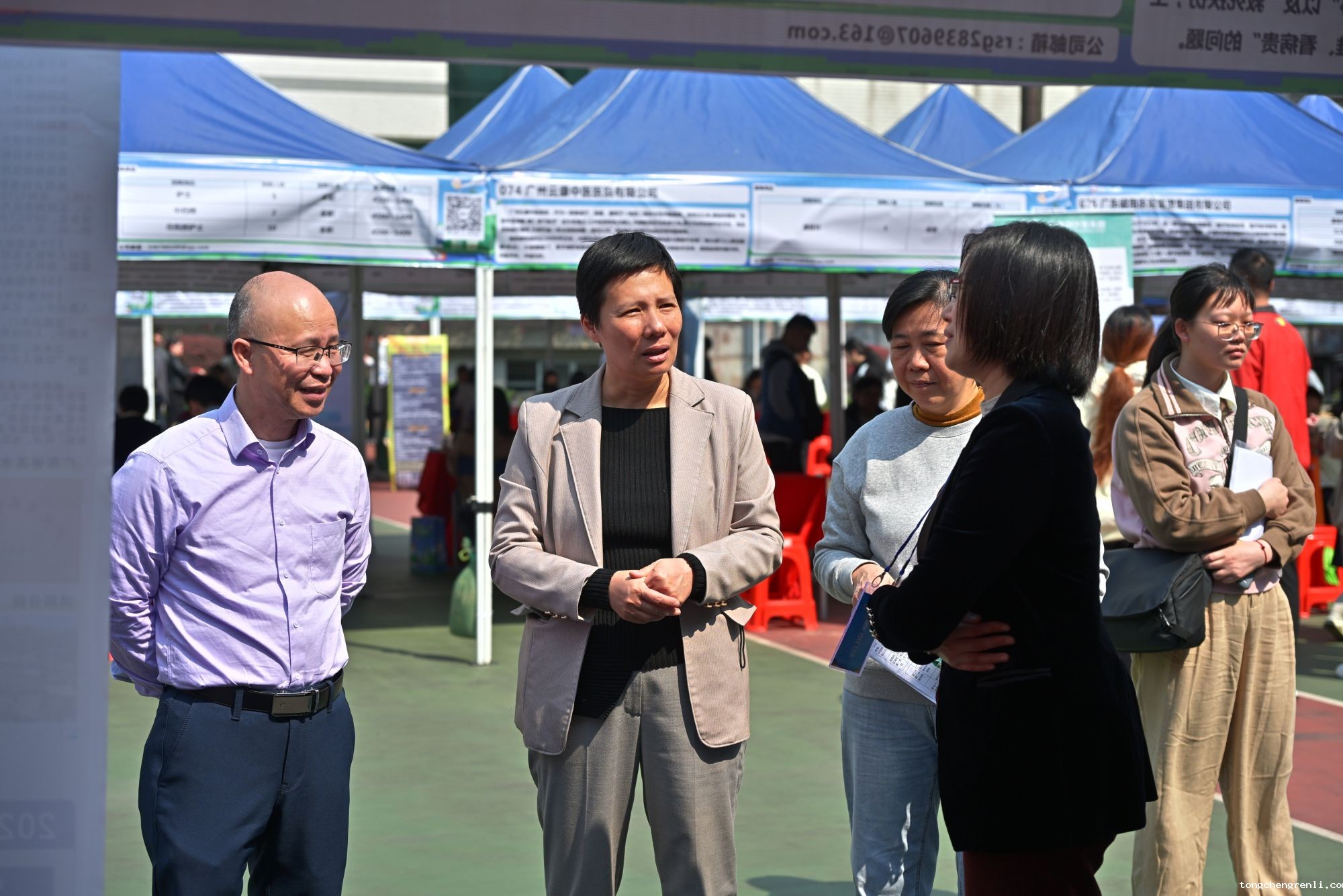 学校高度重视毕业生就业工作,学生工作处(部)处长陈伟民、副处长魏兆瑜带领相关学院负责人、就业指导中心工作人员以及毕业班辅导员等到场与各单位招聘负责人深入交谈,了解市场人才需求,关心毕业生就业状况。期间,陈伟民处长与广州市高校毕业生就业指导中心副主任何全穗就当前医药卫生行业人才需求趋势、毕业生就业形势等进行了探讨。