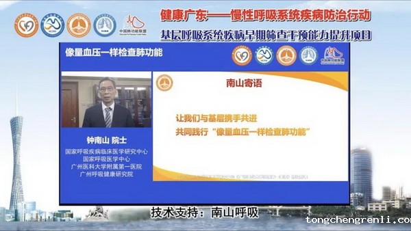 钟南山院士以在线视频形式表达对项目的支持。他指出:要实现慢性疾病防治的目标,“早发现、早干预”是关键,规范健康管理是重点,基层的能力提升是保障,尤其是基层肺功能检查的能力提升更是重中之重。