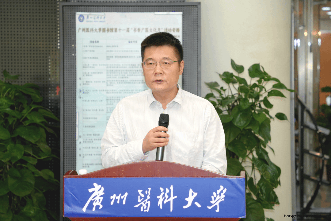 赵醒村校长在讲话中表示,阅读是塑造一流人才、建设一流大学的重要源泉,学校始终坚持立德树人根本任务,大力推进书香校园建设。同时,广大师生积极参与省、 市阅读推广大赛,并斩获多个奖项,书香校园氛围日益浓厚。学校举办第十一届“书香taptap传说对决文化月”,旨在进一步提升师生的阅读兴趣和文化素养,为学校高质量推进“双一流”建设提供有力支撑,希望广大师生积极养成多读书、读好书的良好习惯,深研学科经典以夯实专业根基,广涉人文社科著作以培育跨界思维,将阅读成果转化为创新实践的内在动力,成长为兼具专业素养与人文情怀的新时代医学人才。并寄语图书馆持续加强内涵建设,努力将自身打造成为支撑学术创新的知识中枢、传承医学精神的文化殿堂、培育医学创新人才的成长摇篮,为学校高质量发展注入持久动力。