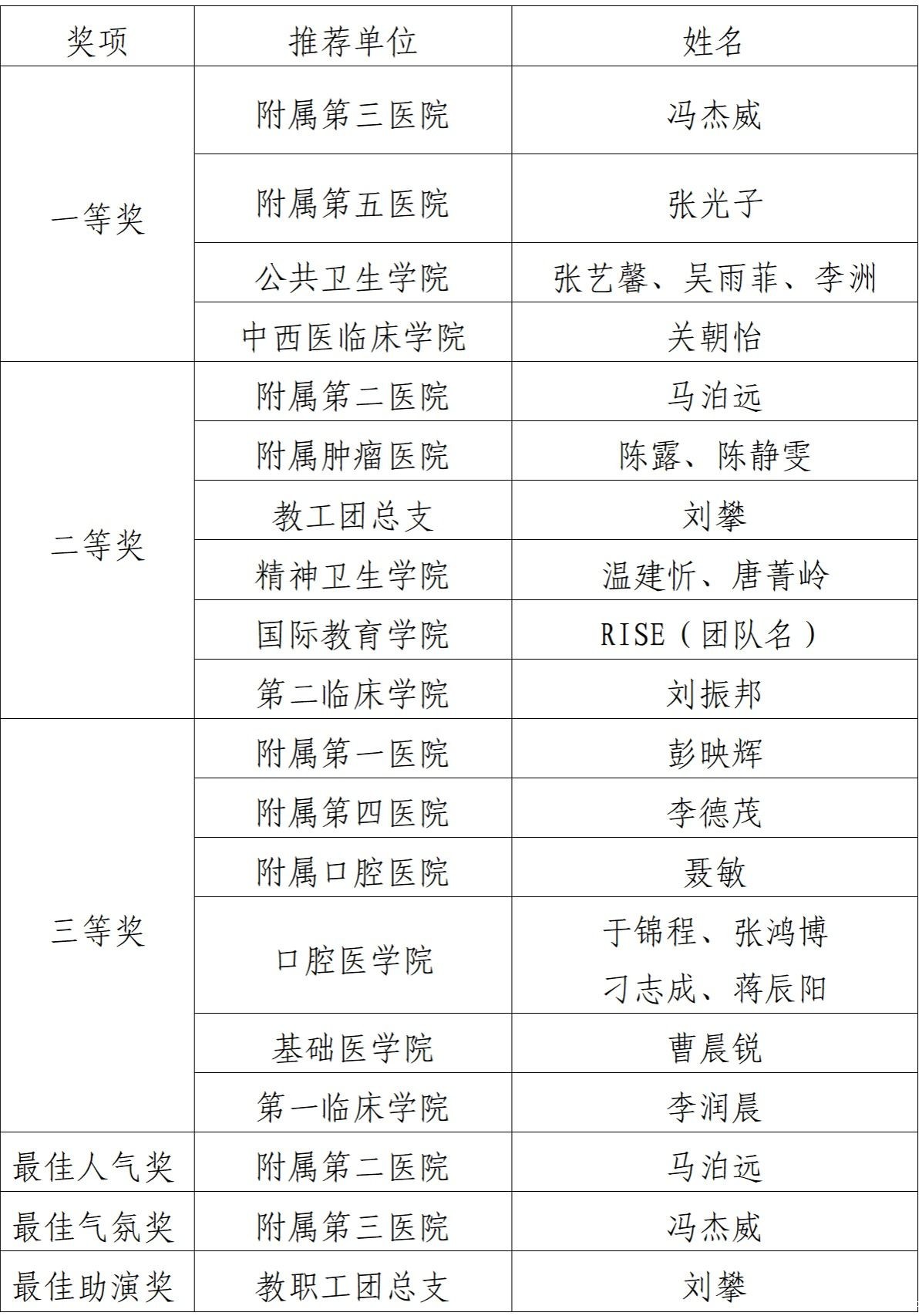 获奖名单