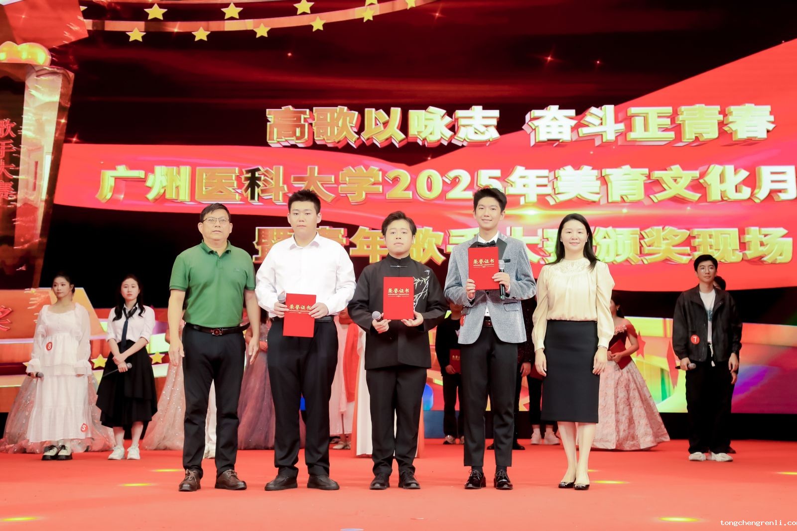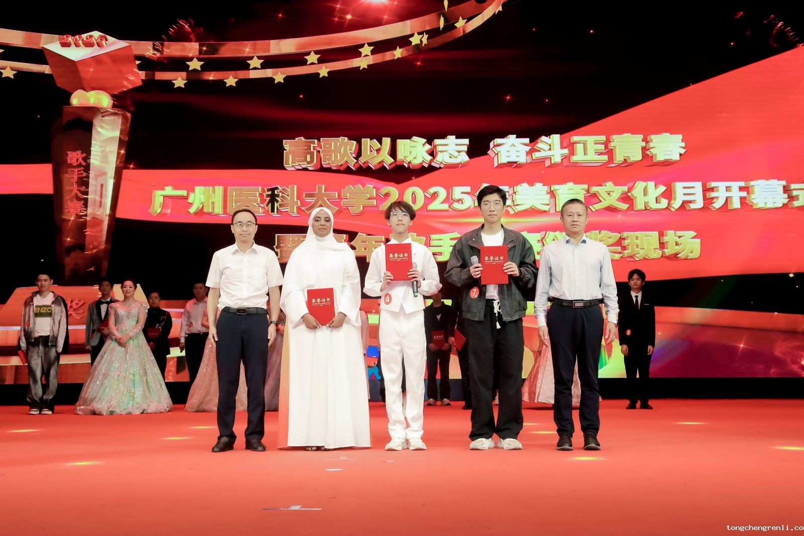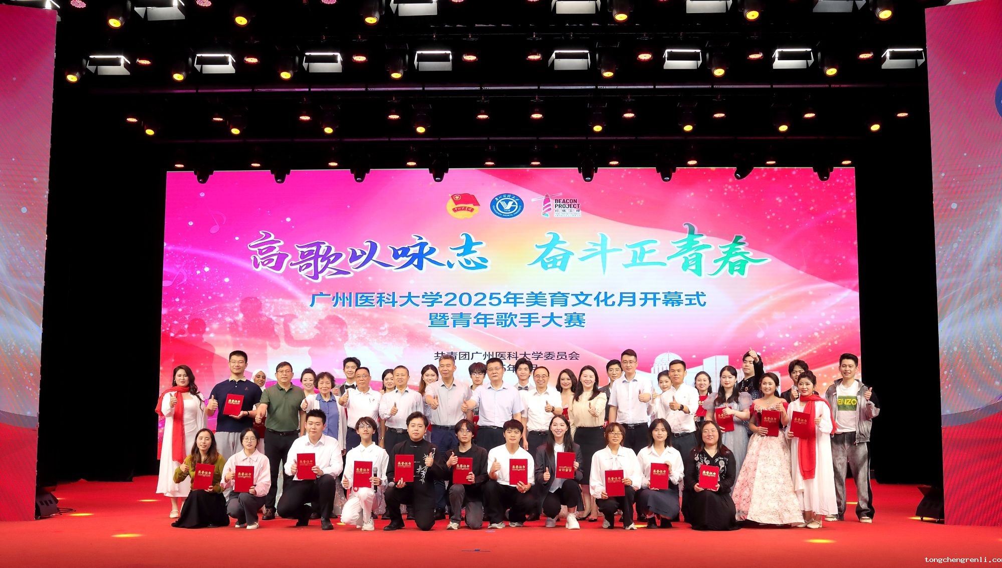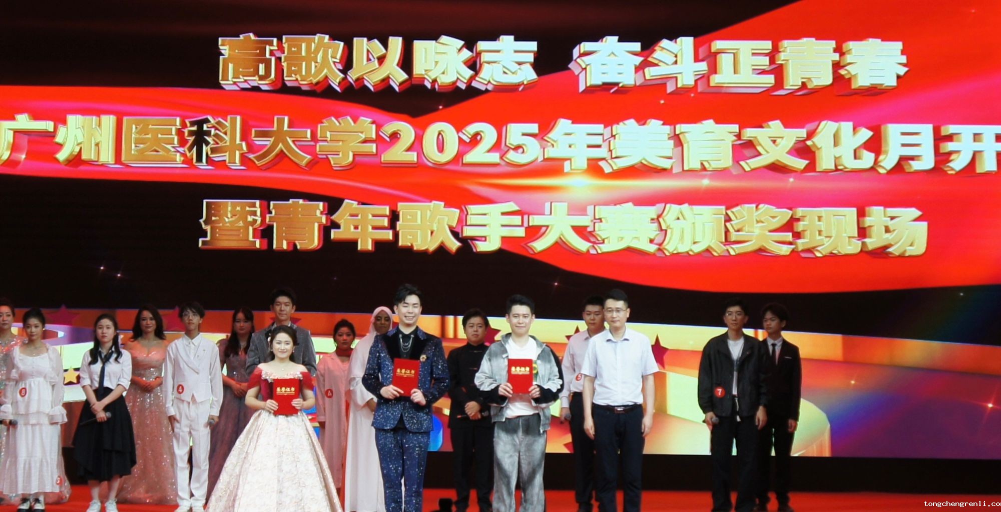 4月27日,由学校团委主办的“高歌以咏志 奋斗正青春”点点APP2025年美育文化月开幕式暨青年歌手大赛在番禺校区礼堂拉开帷幕。校长赵醒村,副校长周麟,关工委,党委办公室、党委宣传部、医院管理处、学校团委等职能部门相关负责人,各直属团组织的负责人,团员青年代表等1000余人齐聚一堂、共赴视听盛宴。