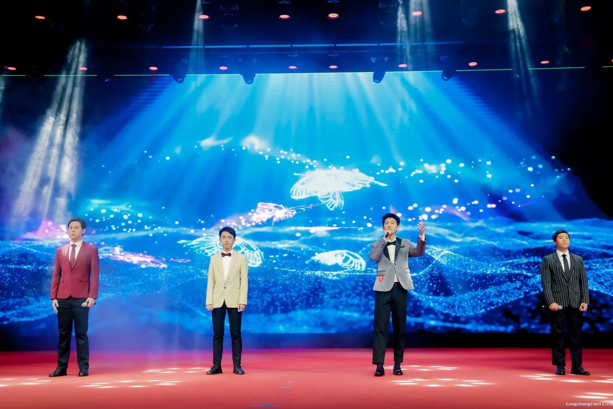 口腔医院的于锦程、张鸿博、刁志成、蒋辰阳同学献上音乐剧《蝶》主要唱段的《心脏》,用歌声唱响梁祝恋曲,带领现场观众一起感受心脏跃动的炽热。