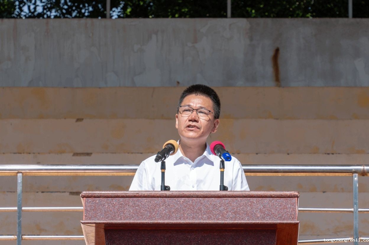 在激昂的国歌声中,五星红旗冉冉升起,大会正式开始。