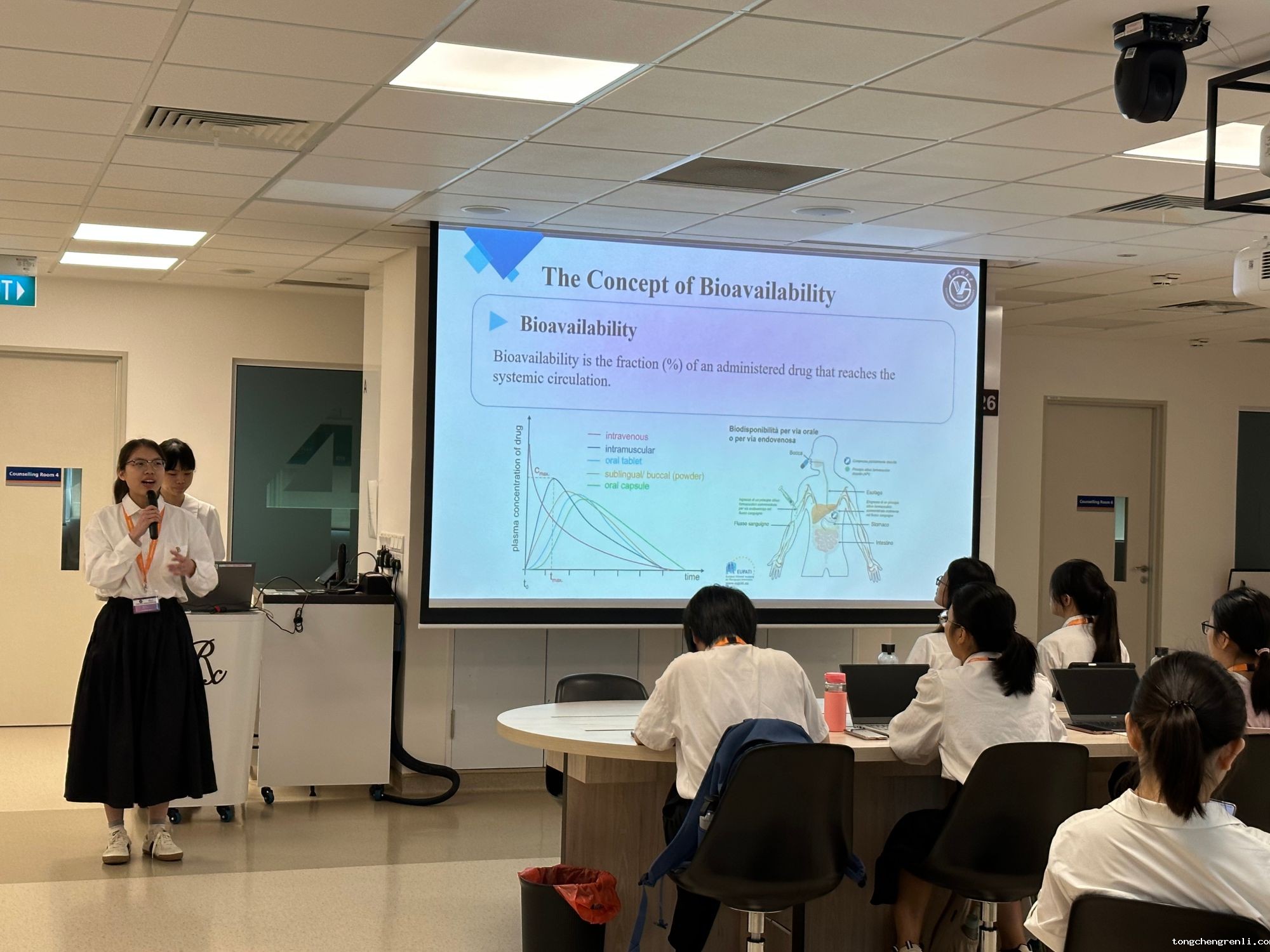本次课程项目主要包括药物代谢动力学、制剂与药物研发、配方与创新制药等系列课程,采用全英文授课。在课堂上,授课教师们以其深厚的专业知识,引领同学们深入探索了药物在人体内的奇妙旅程。例如,Wenqian CHEN教授以生动的语言介绍了药物进入人体内后吸收、分布、代谢到排泄的各个环节,使学生对药物的体内动态过程有了直观深刻的理解;Gigi CHIU 教授系统地讲解了药物制剂设计的基本原理,使学生掌握了如何通过科学的配方和工艺,提升药物的稳定性和疗效;Jiangnan讲师深入分析了药物制剂的生物利用度与生物等效性,强调了这些关键指标对于药物疗效和患者安全性的重大影响。最后一课,学生通过小组汇报的形式,分享了各种提高药物制剂生物利用度的方法,展现了实践成果与创意思维,为本次访学画上圆满句号。