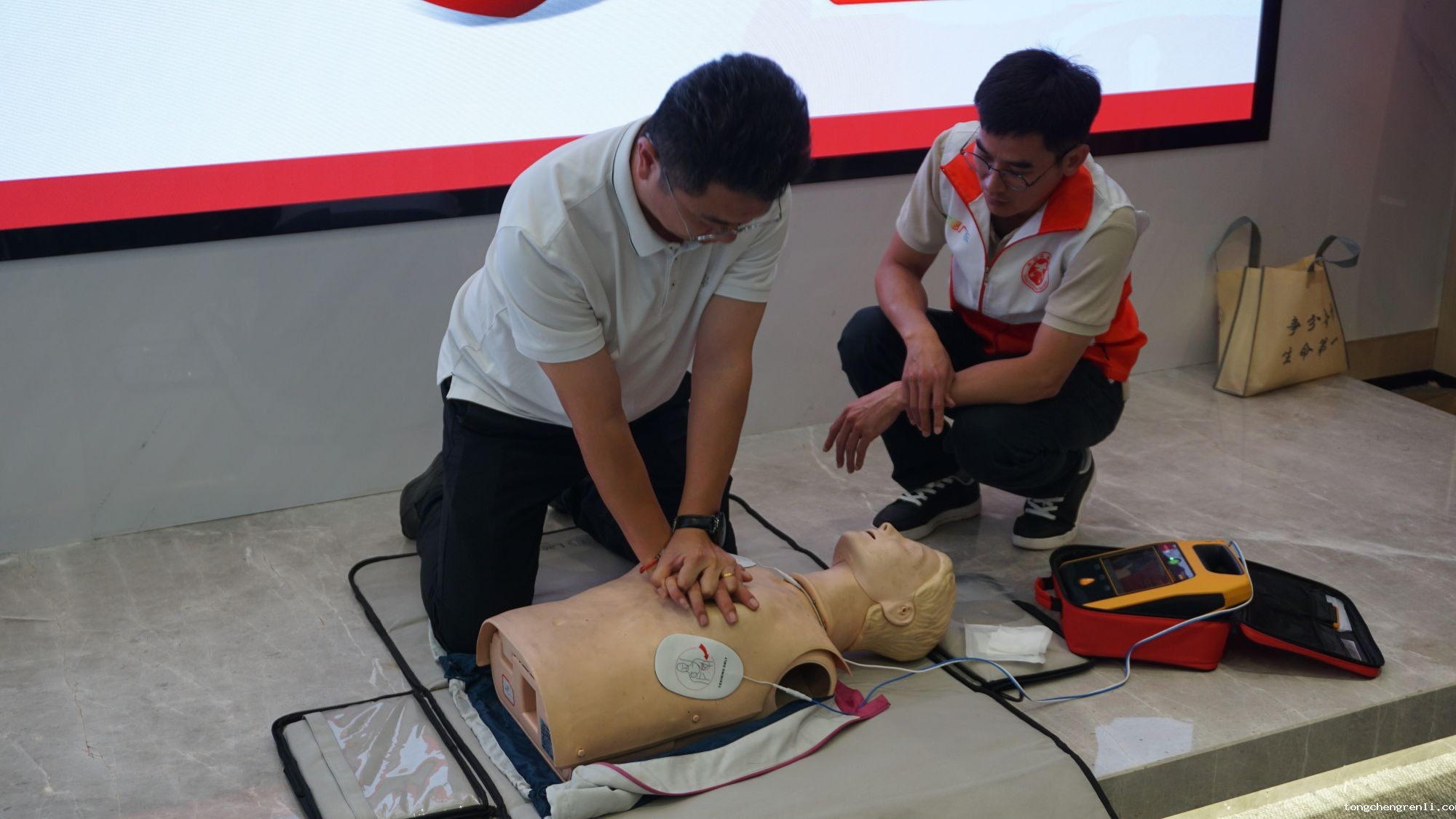 实操环节,医护人员用专业教具,生动演示了海姆立克急救法、心肺复苏术及AED的正确使用步骤,并指导参训人员进行模拟练习。大家纷纷表示,此次培训内容贴近生活,操作性强,极大提升了自身面对突发事件的应急处理能力。