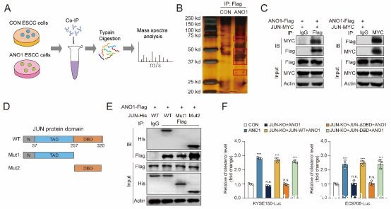 图2 ANO1与JUN蛋白的DNA结合结构域直接结合
