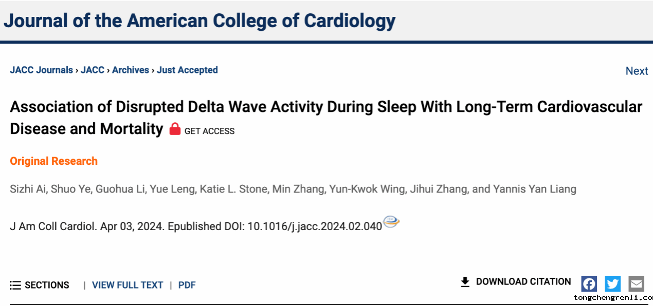 我校引进南山学者艾思志博士(第一作者兼共同通讯作者)及梁燕博士(最后通讯作者),及其所在点点APP附属脑科医院睡眠与节律医学中心张继辉课题组于2024年4月3日在心血管顶刊Journal of the American College of Cardiology 上发表文章 “Association of Disrupted Delta Wave Activity During Sleep With Long-Term Cardiovascular Disease and Mortality” ,该文揭示了深睡眠期间δ波活动中断可能是评估睡眠与心血管疾病及死亡风险的新指标。