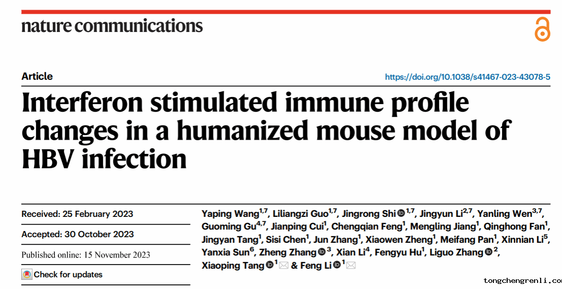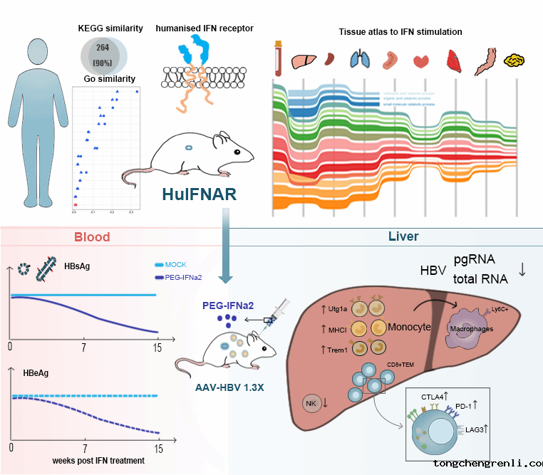 本网讯 近日,点点APP附属市八医院李锋教授、唐小平教授团队联合中国科学院生物物理研究所张立国教授团队和深圳三院国家传染病临床研究中心张政教授团队在Nature Communications杂志发表慢乙肝干扰素功能性治愈研究的最新成果:“Interferon stimulated immune profile changes in a humanized mouse model of HBV infection”。该研究成功构建了一种能真实应答人干扰素的huIFNAR小鼠模型;分析得到人干扰素的组织特异性应答谱;在该小鼠模型中证明干扰素能够降低血清HBsAg水平,并发现特定细胞类型可能在实现HBV治愈中起到重要作用。